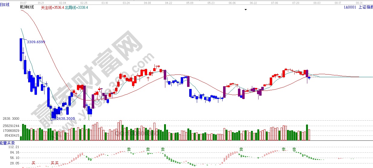 ★依據贏家江恩理論系統乾坤K線提示:k線有紅轉紫警示信號,觀察本周最后兩個交易日關注線與短期出局線是否會走出死叉,還是粘合。