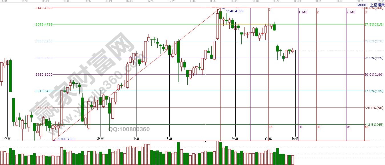 江恩看盤綜述:依據贏家江恩技術工具分析得出:本周市場在黃金分割位3000點附近出現了交易性的反彈機會,但在存量博弈未改的格局下,但指數向上的空間不大,仍需要時間重新震蕩休整,9月22日又是近期提到的窗口,留意盤面變化,如有沖高不宜盲目追漲,短線阻力是3030點,3050點附近,操作上,不追漲,建議保持倉位下耐心等待良機。