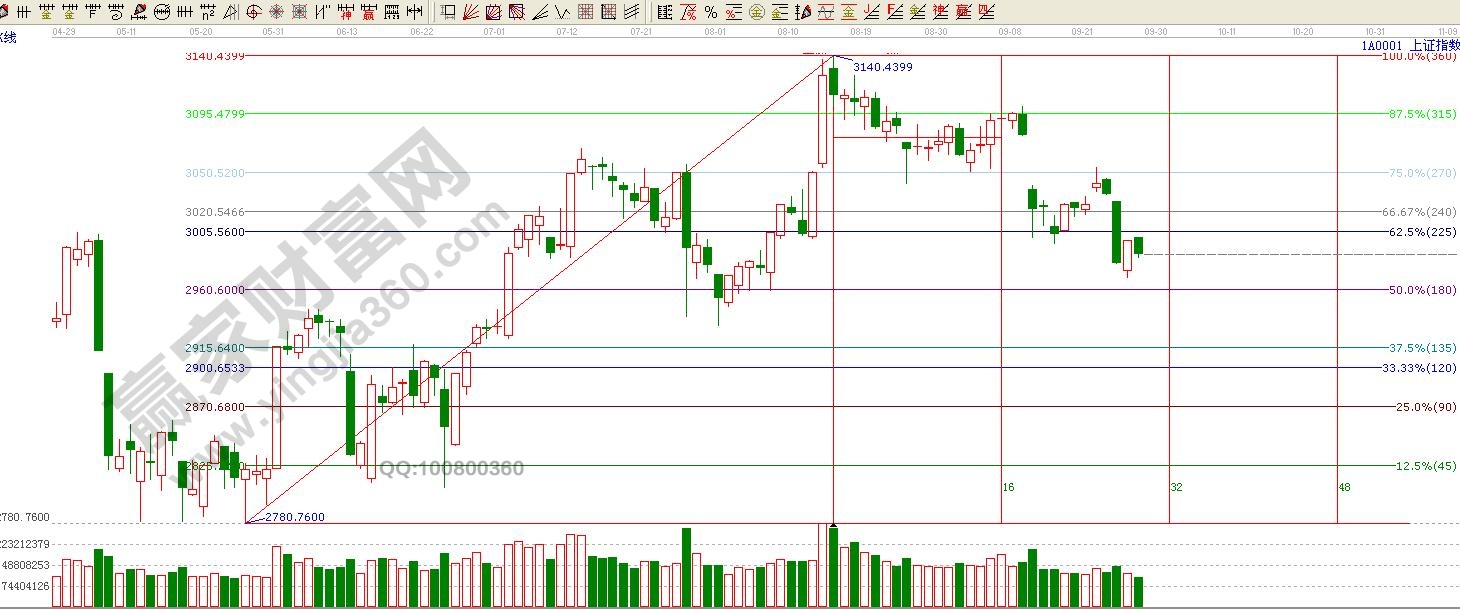江恩看盤綜述:依據贏家江恩技術工具分析得出:滬指在60分周期極反通道藍色下軌引發超跌反彈,此位置同時也是2780點到3140點波段的180度附近,28日尾盤資金的異動也表明此位置的敏感性,量能上萎縮較為明顯,反映出投資者普遍持觀望心態,由于國慶長假即將來臨,海外市場波動也較為激烈,預計節前A股出現大波動的概率不大,市場或持續弱勢盤整,等待節后技術面和消息面的進一步明確。操作上,逢低可逐步加倉,重點關注央企改革。
