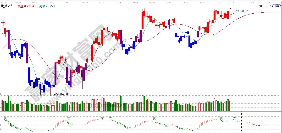 ★依據贏家江恩理論系統乾坤K線提示:收盤在短線出局線之上,依據規則,短線,波段均看多。