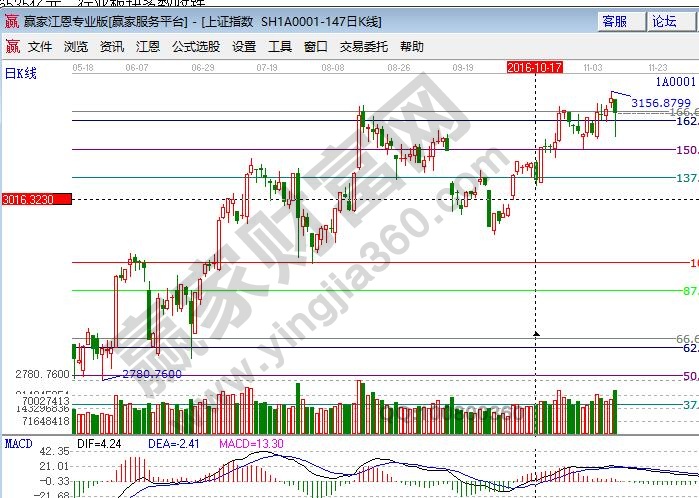 板塊方面,黃金概念、S股、OLED、股權(quán)轉(zhuǎn)讓、民營醫(yī)院、房地產(chǎn)等板塊漲幅居前。券商信托、工程機(jī)械、船舶、保險(xiǎn)、鐵路基建、海工裝備等板塊跌幅居前。美國大選落幕,A股市場(chǎng)也將回歸理性,從新回到自身的運(yùn)行軌跡。技術(shù)方面,短周期15分鐘失守生命線,30、60分鐘在生命線徘徊,預(yù)計(jì)明日短線還會(huì)有反復(fù),同時(shí)今日快速的下探也洗出一波浮籌,波段趨勢(shì)以震蕩上行的走勢(shì)觀點(diǎn)不變。