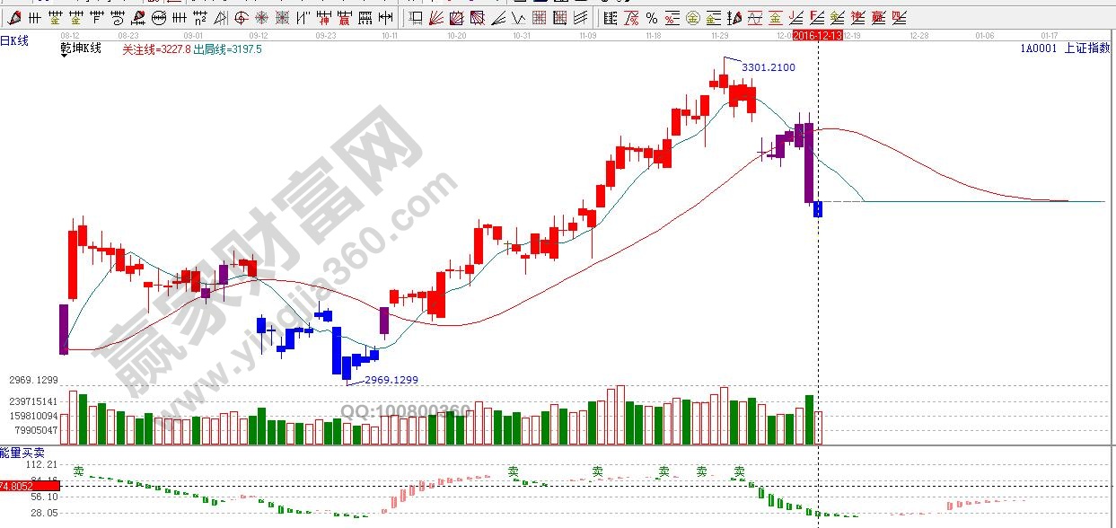 ☆依據贏家江恩理論系統能量買賣提示:綠色看空能量柱縮短,短期謹慎。