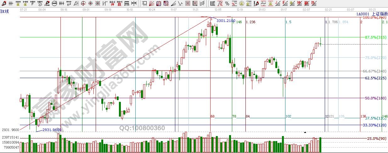 ☆依據(jù)贏家江恩理論系統(tǒng)江恩波段百分比線提示:16年5月26日2780點(diǎn)--11月29日3301點(diǎn)做波段百分比,周三最高達(dá)到315度3236點(diǎn)遇阻回落,短期逢高注意保護(hù)利潤,切勿追高,下方支撐位270度線3171點(diǎn)附近。