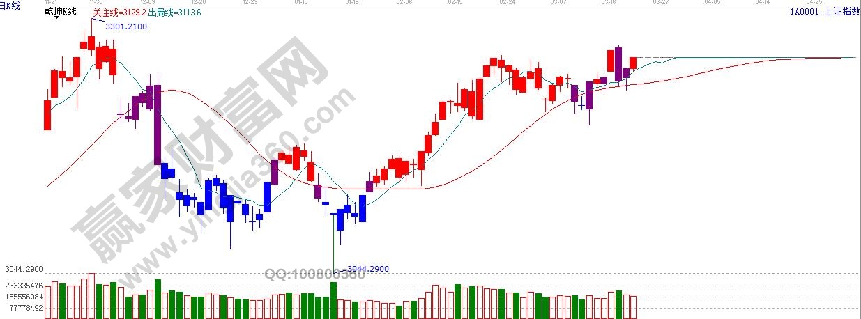 ★依據贏家江恩理論系統乾坤K線提示:紅色關注線之上,紫色警示k線,轉入紅色k線,依據規則,看多。