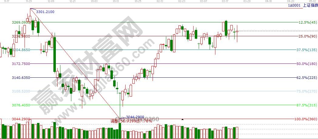 ☆依據贏家江恩理論系統江恩波段百分比線提示:周四,滬指盤中再次破位3236點,短線支撐依然關注3236點,3204點,上方面臨日線45度線3269點。