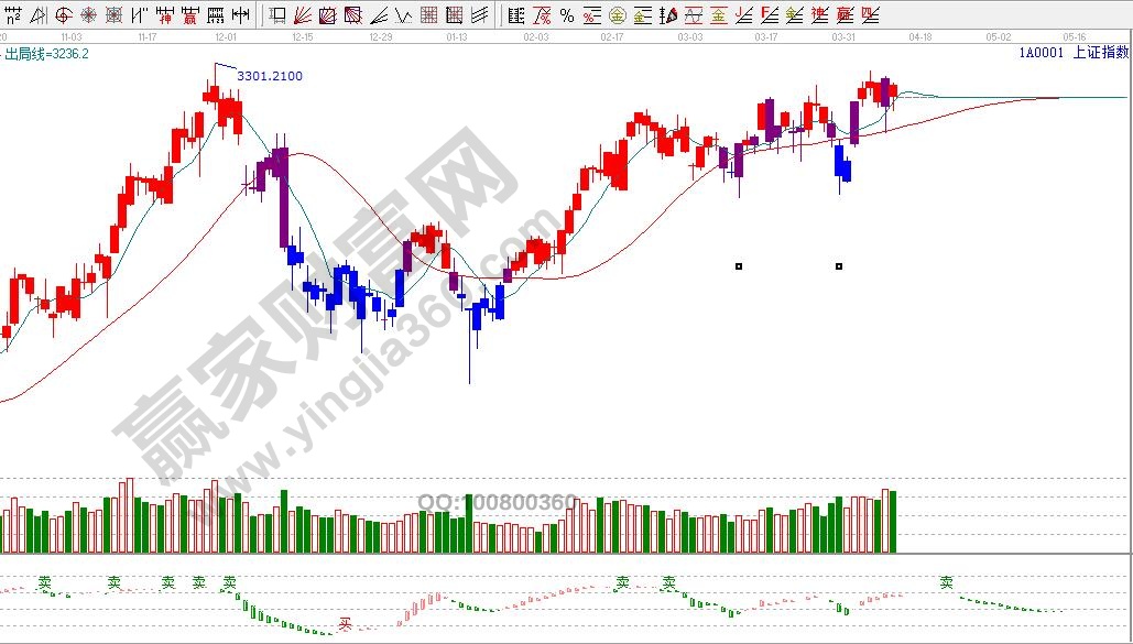 ★依據贏家江恩理論系統乾坤K線提示:紅色關注線上方,由紫色k線轉入紅色k線,依據規則,看多做多。