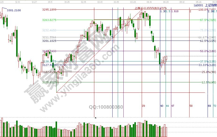 江恩看盤綜述:依據(jù)贏家江恩技術(shù)工具分析得出:目前,滬指各周期均處于極反通道藍(lán)色超跌區(qū)域,隨著成交量的回升,市場操作情緒有所回升,指數(shù)短期還有反彈空間,節(jié)后進(jìn)入五月份,次新股、人工智能以及一帶一路能否迎來反彈,對于節(jié)后指數(shù)的反彈有重要的意義。反彈目標(biāo)位重點看缺口3189--3196點。時間上,假期的因素,時間窗口順延3天,是5月04日。操作上,整體趨勢處于生命線之下,弱勢,倉位控制在3-5成。