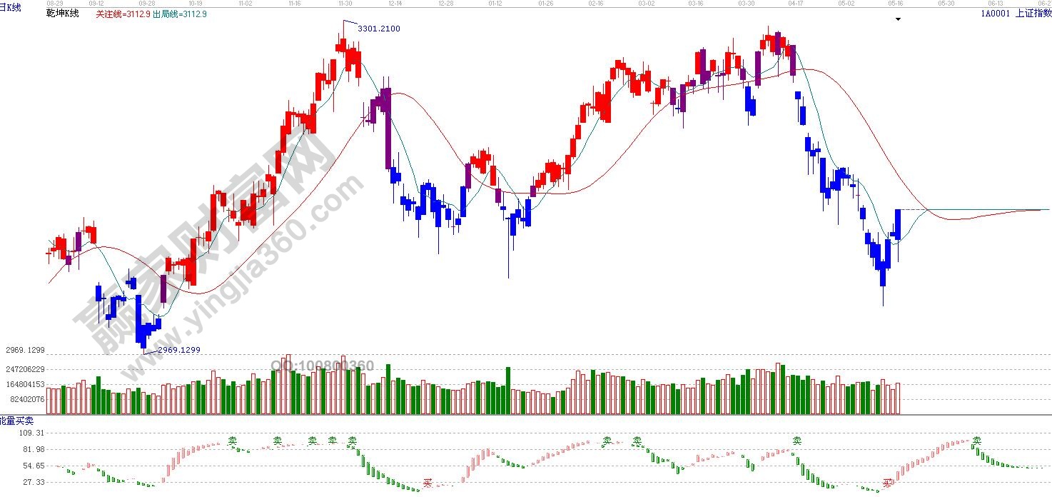 ☆依據贏家江恩理論系統乾坤K線提示:收復出局線,依然在紅色關注線之下,依據規則,短線看多。