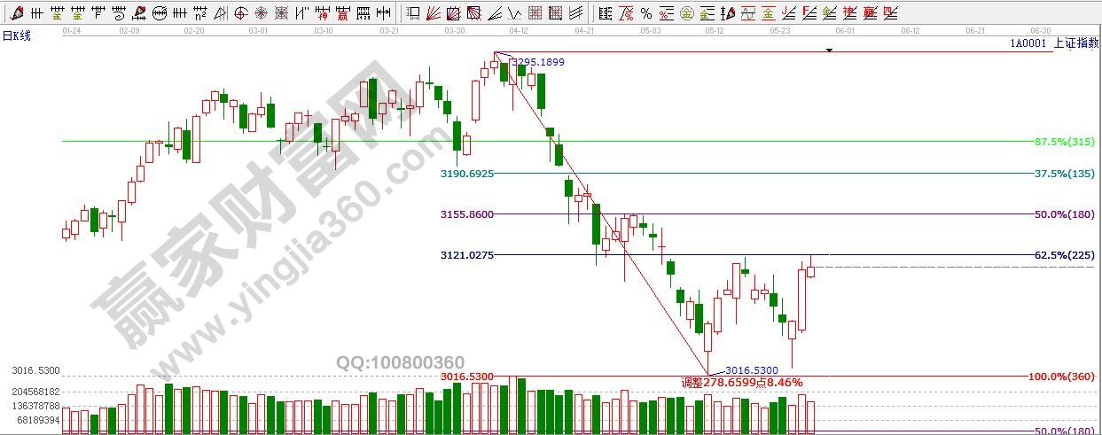 ★依據贏家江恩理論系統江恩波段百分比線提示:周五,滬指沖高回落,短期如收復3121點,第一目標是3155點,第二目標是3190點附近。