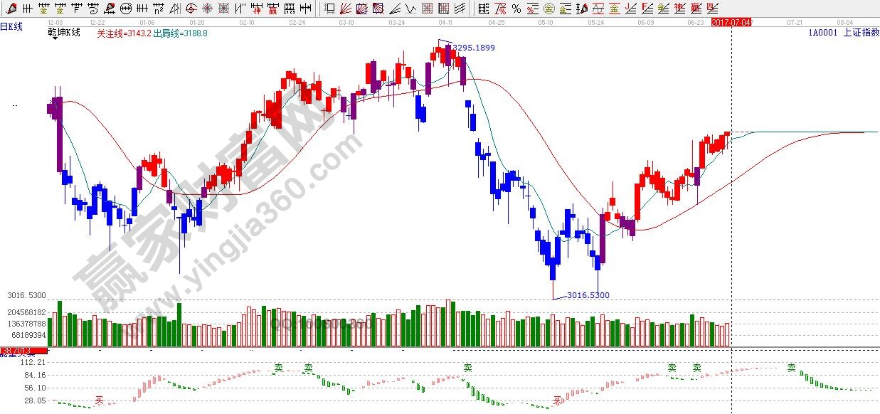 江恩看盤綜述:依據贏家江恩技術工具分析得出:周一,滬指阻力位下維持強勢整理,指數連續上行后短期滯漲明顯,百分比壓力3190--3202點下,成交量低迷,有調整需求,支撐位江恩180度線3155附近。另外,前期的白馬股持續上行之后,短期獲利頗豐,可選擇適當減持,時間上,下一窗口留意7月6日附近,操作上,短期適當高拋,等待低吸機會,板塊上,可繼續跟蹤和潛伏中報業績預增良好的個股。