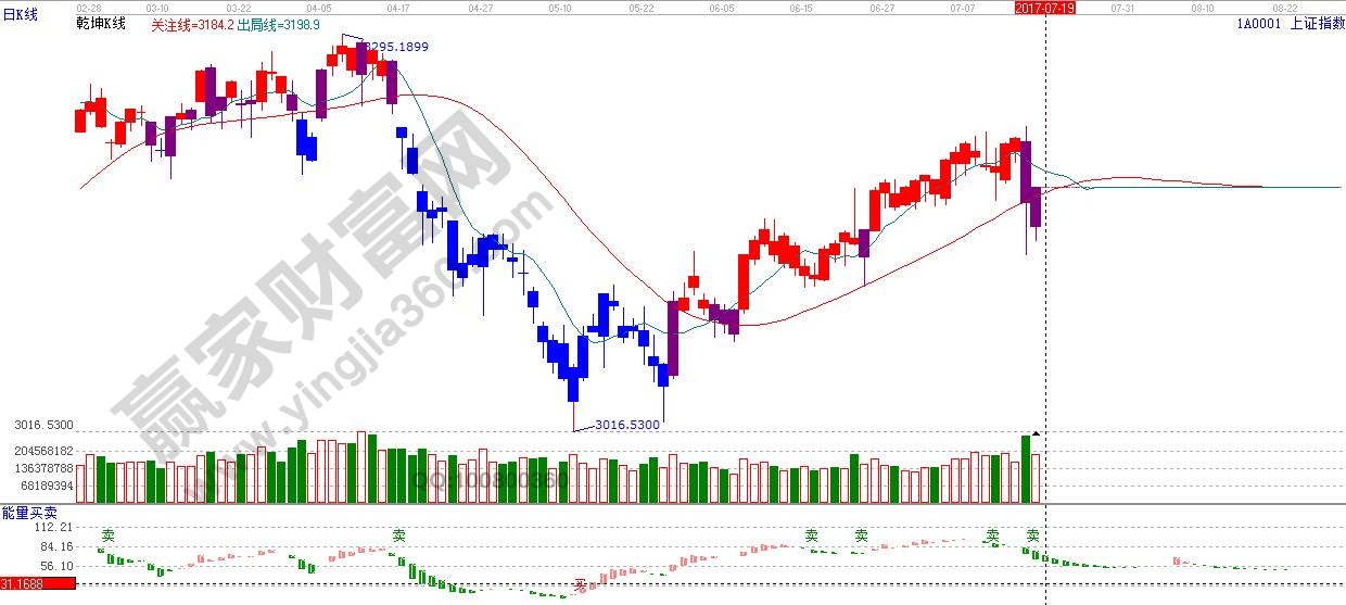 ☆依據贏家江恩理論系統能量買賣提示:上周就有賣字出現,綠色柱子加長,依據規則,看空,保持謹慎。