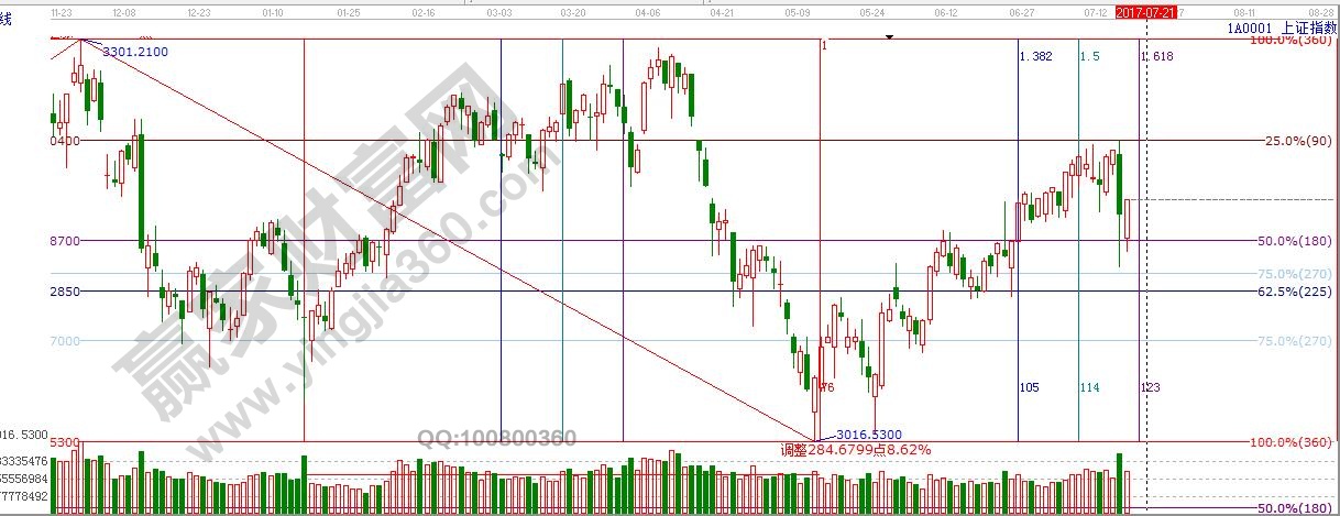 ☆依據贏家江恩理論系統黃金時間周期線提示:下一時間點在7月21日附近。