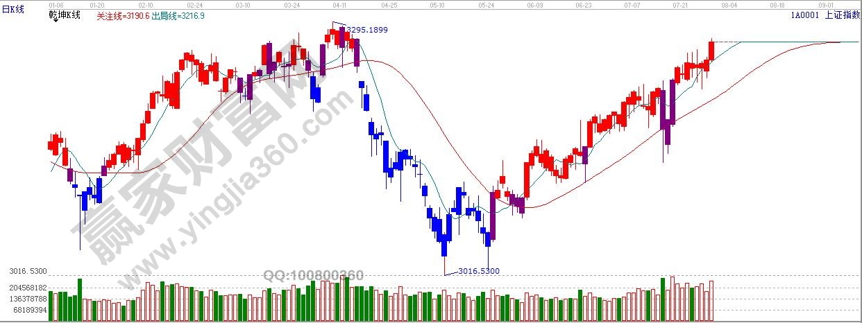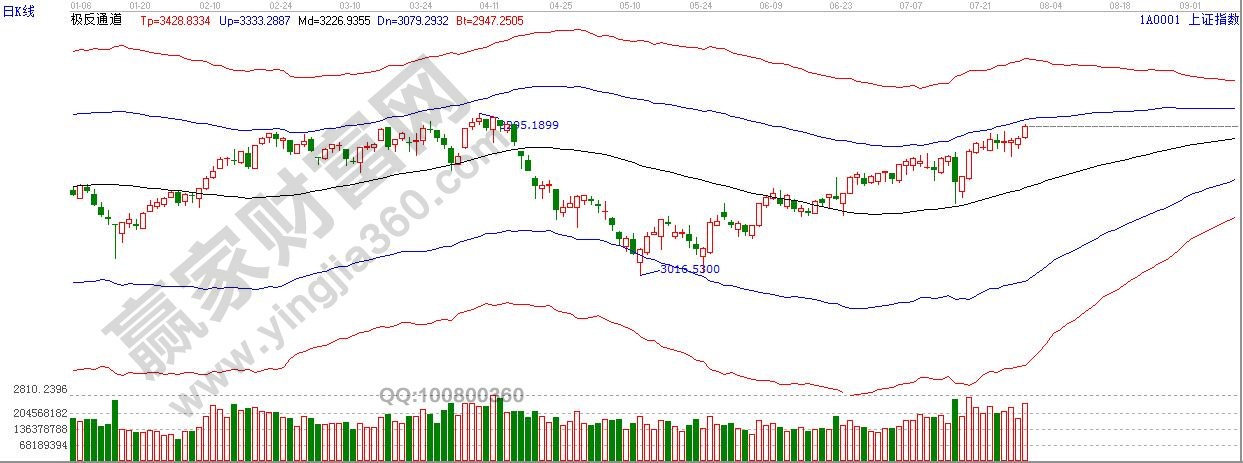 ★依據贏家江恩理論系統極反通道提示:滬指短期整理之后,今日再次向上創下新高,試探日線藍色線3280附近。整體趨勢保持多頭勢頭。