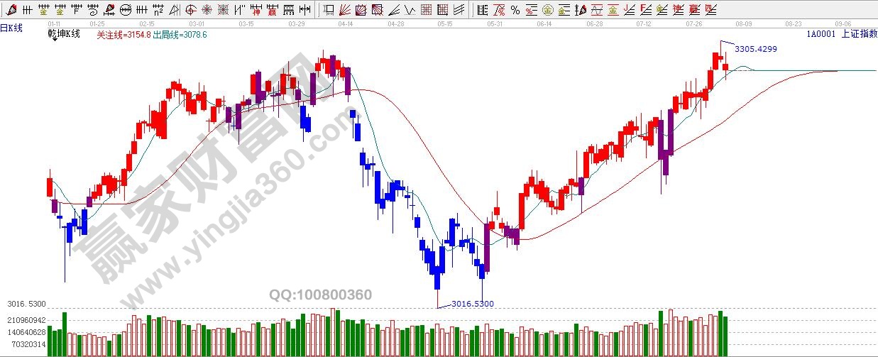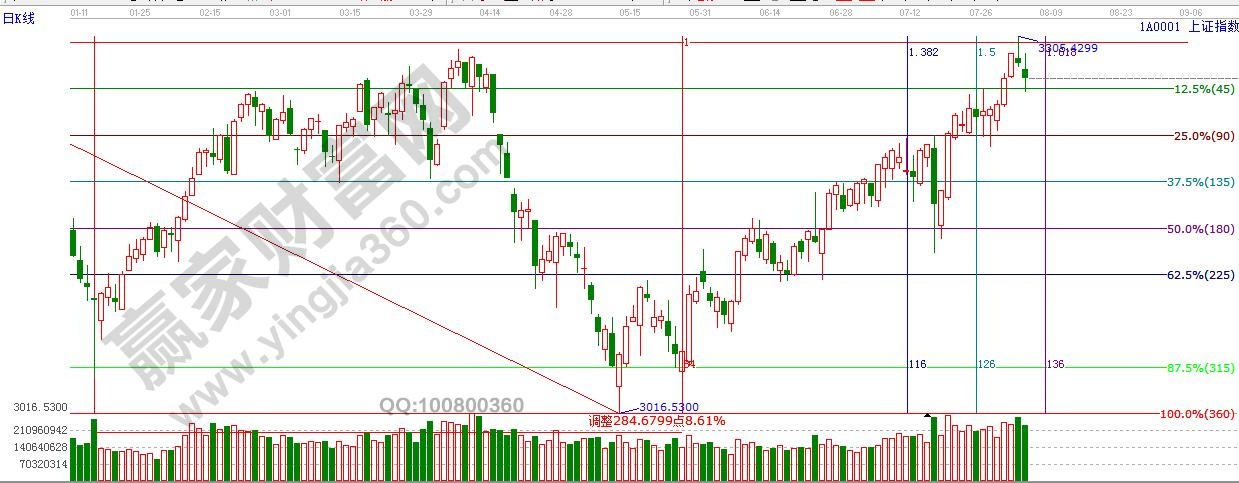 ☆依據(jù)贏家江恩理論系統(tǒng)黃金時(shí)間周期線提示:下一下窗口8月8日附近,觀察量價(jià)表現(xiàn)。
