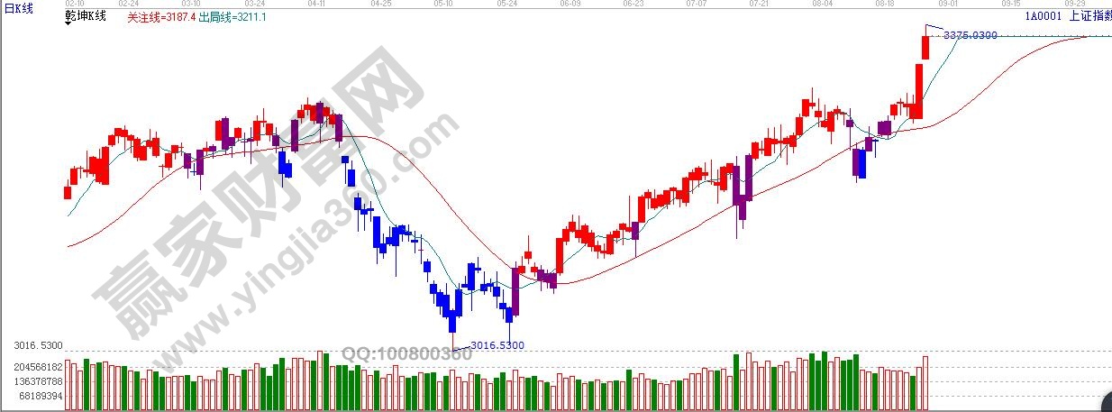 江恩看盤綜述:依據贏家江恩技術工具分析得出:周一,滬指高開高走,強勢突破極反通道藍色上軌線,打開了新的上行空間,盤中最高沖擊45度線3380點附近,量能同比放大,但在沖高過程中五大行和一批行業龍頭股有出貨的跡象,所以,短期指數上行中或仍有反復,短期不宜盲目追高。操作上,輕指數、重個股。不追高的前提下,低吸低位放量,具有業績支撐的良好標的。