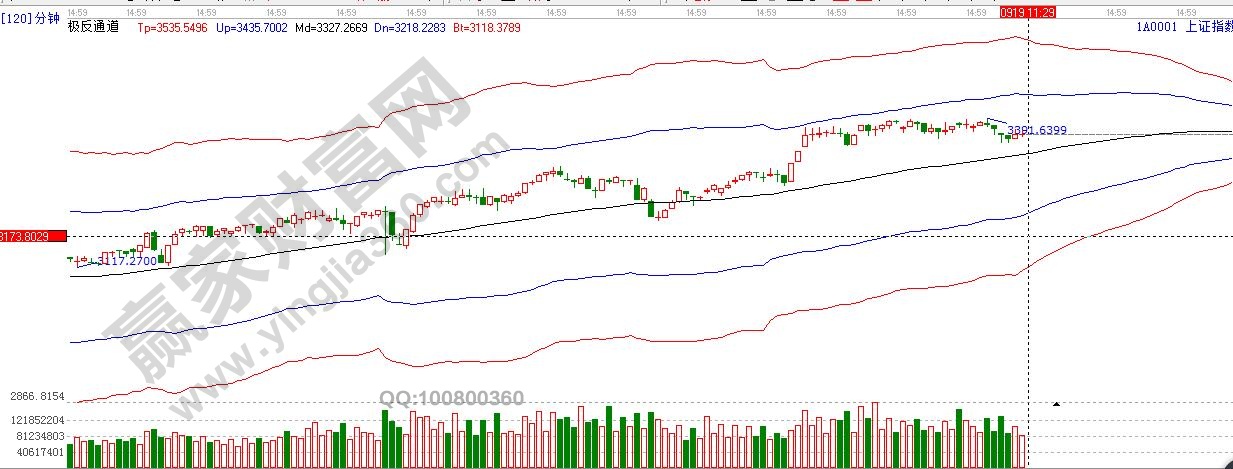★依據(jù)贏家江恩理論系統(tǒng)極反通道提示:大盤震蕩反彈,60分生命線3370點遇阻整理,下方120分生命線價格是3330點附近。