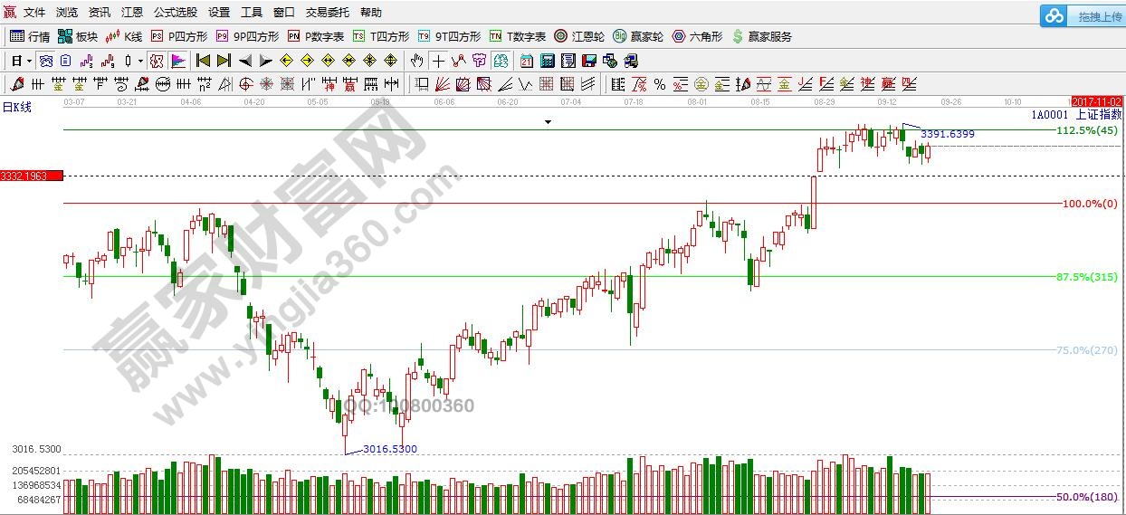 ★依據(jù)贏家江恩理論系統(tǒng)極反通道提示:滬指小幅回升,60分生命線3370點(diǎn)遇阻整理,此價(jià)格的得失,決定著短線的強(qiáng)弱。下方支撐是3330點(diǎn)附近。