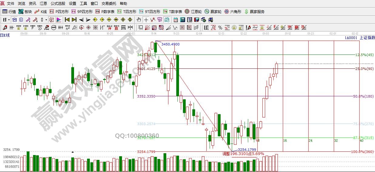 江恩看盤綜述:依據(jù)贏家江恩技術(shù)工具分析得出:周一,滬指放量上行,突破百分比90度3401點,超預(yù)期強勢。阻力位3401點轉(zhuǎn)變?yōu)橹危魅諏⒖简炂渫黄朴行裕?401點位置之上,1月10日窗口之前,指數(shù)有望繼續(xù)保持強勢震蕩態(tài)勢,但也需時刻防止可能的回調(diào)風(fēng)險。操作上,節(jié)前以及近期加倉的可考慮逐步減倉,機會上,年報預(yù)熱行情已經(jīng)拉開帷幕,重點跟蹤首批公布年報業(yè)績以及業(yè)績大幅預(yù)增的相關(guān)標的。