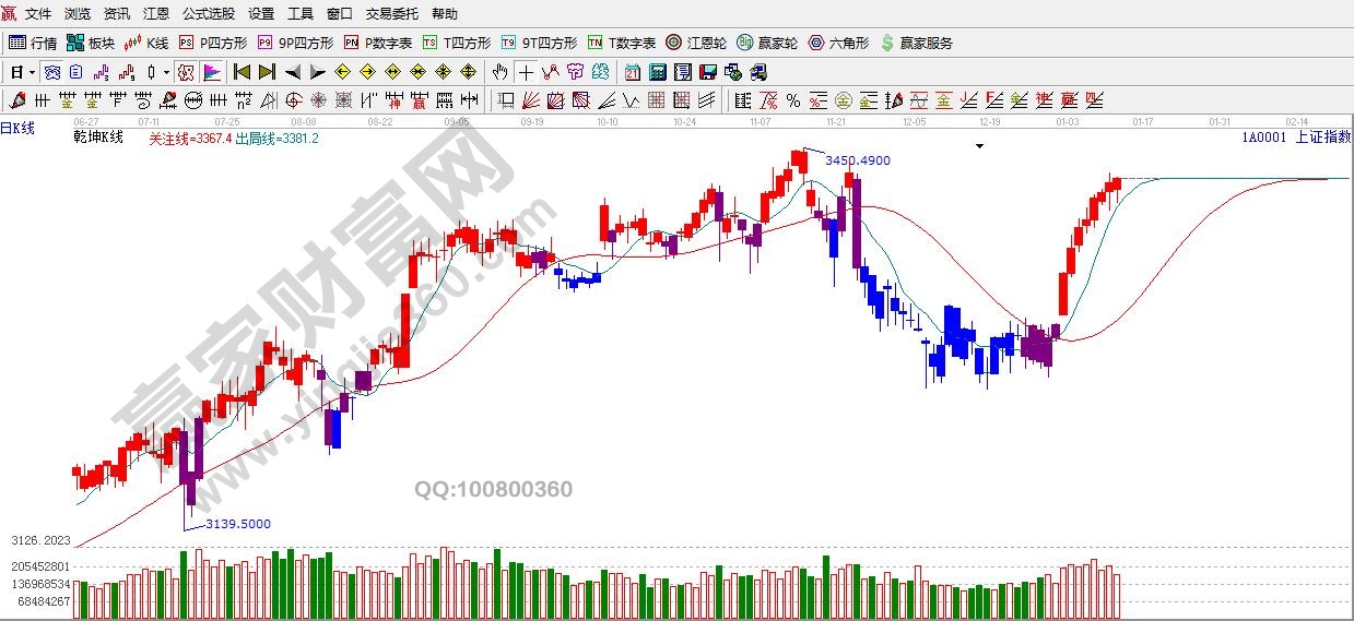 ★依據贏家江恩理論系統乾坤K線提示:紅色關注線之上,紅色可操作區域,趨勢多頭。
