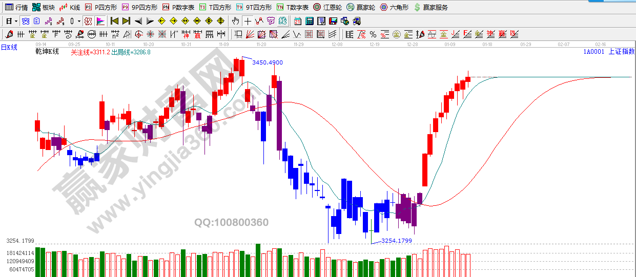 ★依據(jù)贏家江恩理論系統(tǒng)乾坤K線提示:紅色關(guān)注線之上,紅色可操作區(qū)域,趨勢(shì)多頭。