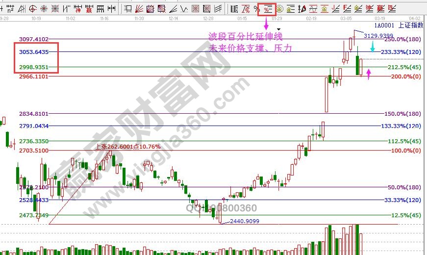 ★依據贏家江恩理論系統江恩輪中輪提示:以2440點為起點做江恩輪中輪時空分析圖,12號盤中重點跟蹤四方形90度3051點壓力位,盤中壓力是3000點整數關口,支撐上運行繼續看多。