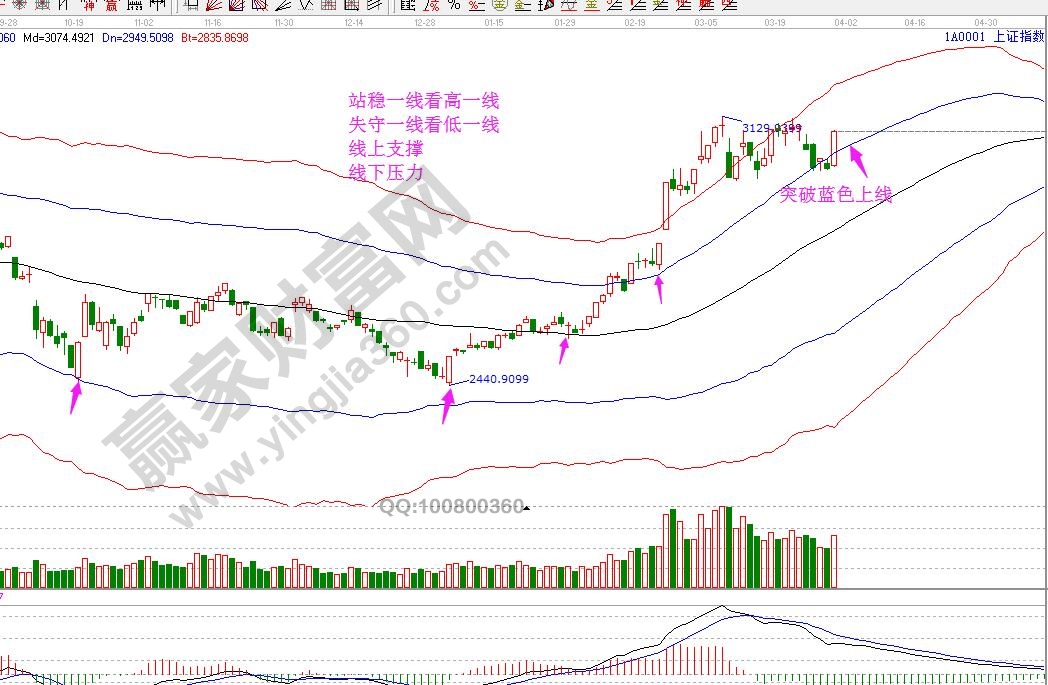 ☆依據贏家江恩理論系統波段百分比延伸線提示:以2440點為起點,2703點為終點做圖,180度3096點是4月1號盤中跟蹤位,突破向上壓力是225度3129點,線下震蕩120度3052點支撐。