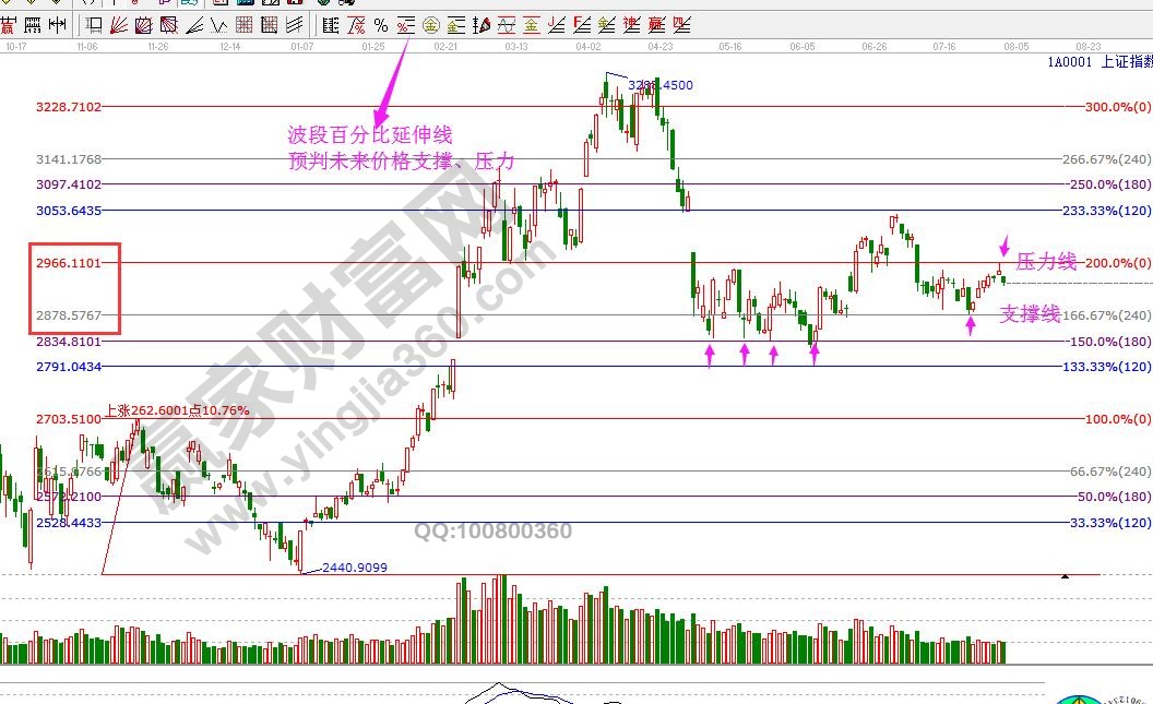 ☆依據贏家江恩理論系統波段百分比延伸線提示:以2440點為起點,2703點為終點做圖,指數8號中陰擊破零度2966點后弱勢震蕩,連續兩度試探240度2878點支撐走強,上攻至零度位2966點壓力回落,此線不能快速突破,則有再度下探動作。