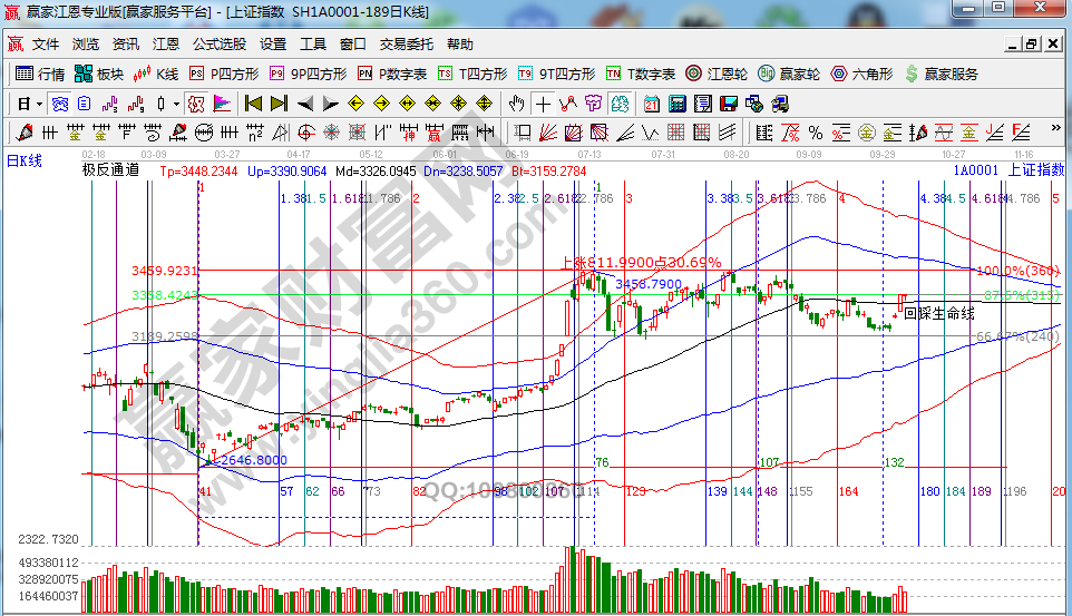 贏家江恩三步分析圖,解析大盤當下及未來走勢。