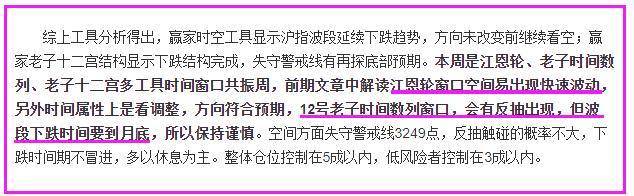 綜上工具分析得出,贏家時(shí)空工具顯示滬指波段延續(xù)下跌趨勢,方向未改變前繼續(xù)看空;贏家老子十二宮結(jié)構(gòu)顯示下跌結(jié)構(gòu)完成,失守警戒線有再探底部預(yù)期。首先短線預(yù)判12號(hào)老子時(shí)間數(shù)列反抽得到市場確認(rèn),早盤在學(xué)員區(qū)直播貼再次強(qiáng)調(diào)具體反抽時(shí)間,時(shí)間到達(dá)后如期展開反抽印證時(shí)間分析的重要性。其次時(shí)間定性為下跌途中的反抽,要警惕老子十二宮15號(hào)窗口。最后波段維持持續(xù)調(diào)整的觀點(diǎn),3月16號(hào)政策底之后,需要確認(rèn)市場底,縱觀歷史重要拐點(diǎn),如998、1004;1949、1849;2449、2440;2685、2646等,重要拐點(diǎn)多以雙底或三重底出現(xiàn),所以波段投資者繼續(xù)休息,短線選手只在關(guān)鍵時(shí)間、關(guān)鍵空間做決策。板塊方面老子十二宮顯示東數(shù)西算、文化傳媒13號(hào)為窗口,更多時(shí)間窗口查看工具。整體倉位控制在5成以內(nèi),低風(fēng)險(xiǎn)者控制在3成以內(nèi)。