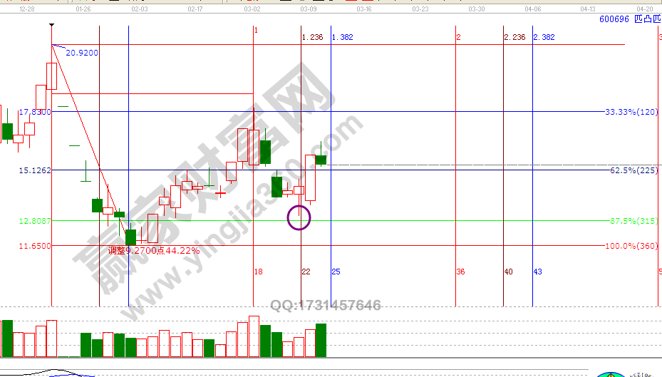 其次,利潤空間的價值性。我們在操作個股的時候,一定要提前判斷操作的價值是不是高,是風(fēng)險大于機(jī)會,還是機(jī)會大于風(fēng)險,賺少賠多的生意不做。這就需要我們利用各種的價格工具來判斷漲跌幅的空間,如果價格已經(jīng)接近了壓力位,則風(fēng)險大于收益,反之,剛站穩(wěn)支撐,則收益大于風(fēng)險。百分比和黃金分割是我們常用的價格分析手段。極反通道是贏家江恩用來判斷趨勢以及漲跌空間的特色工具,如果結(jié)合使用,則判斷更準(zhǔn)確。