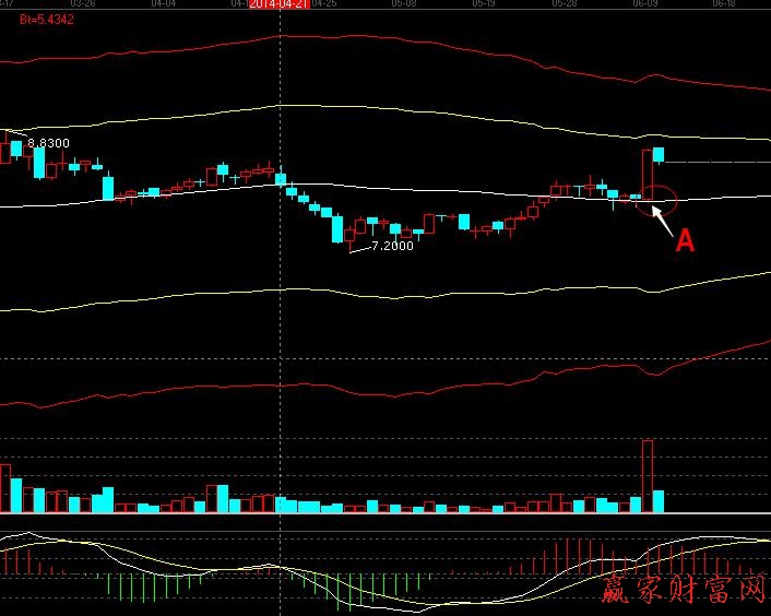首先,我們通過極反通道來分析一下該股目前狀況。如下圖所示,價格一直在生命線和強勢外軌線之間來回的震蕩,這期間多空雙方處在暫時的平衡狀態,我們也可以認為這是大戶在故意的震蕩嚇出不堅定的跟風者,該股前多次遇到中間的生命線,遇到較大阻力,沒有形成有效突破。最終在生命線下附近經過一段時間的蓄勢,在圖中所標A處一舉突破生命線,并且伴隨著逐步放量收陽。股價處在強勢區,放量大漲,再加上6月10號有兩家大機構買入,所以對于投資者來說可以放心持有。