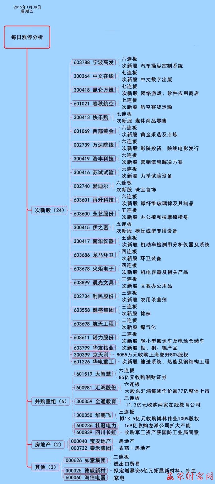 【次新股:火炬電子、中文在線、再升科技、寧波高發、快樂購、南華儀器、永藝股份、萬達院線、浩豐科技、蘇試試驗、伊之密、龍馬環衛、昆侖萬維、春秋航空、西部黃金、健盛集團、晨光文具、利民股份、航天工程、諾力股份、華友鈷業、愛迪爾、華電重工】