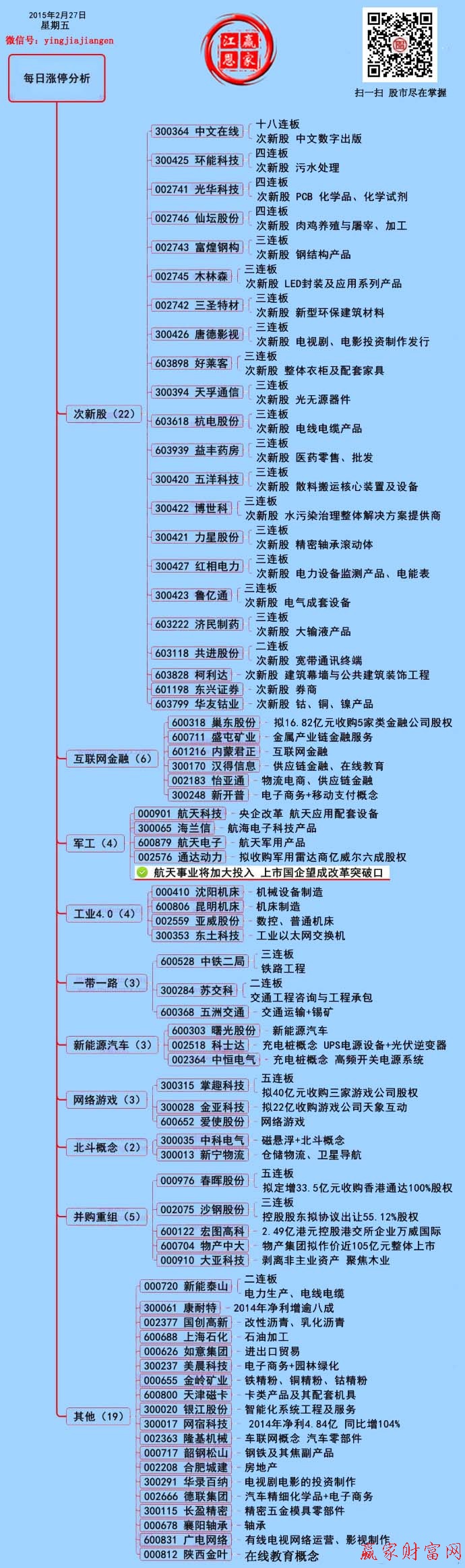 漲停原因揭秘:隨著兩會臨近,今年軍費開支再度成為社會關注焦點。2015年軍工增速仍將保持10%-15%較快增長,其中裝備采購方面將是增長重點,占比將持續提高。受此影響,相關個股漲停,航天電子(600879)現有技術和主導產品廣泛應用于運載火箭、飛船、衛星等領域。