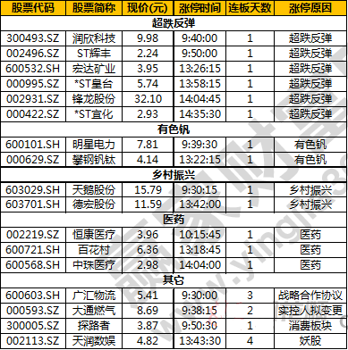 超跌反彈、有色釩、醫(yī)藥 封板效率:較低