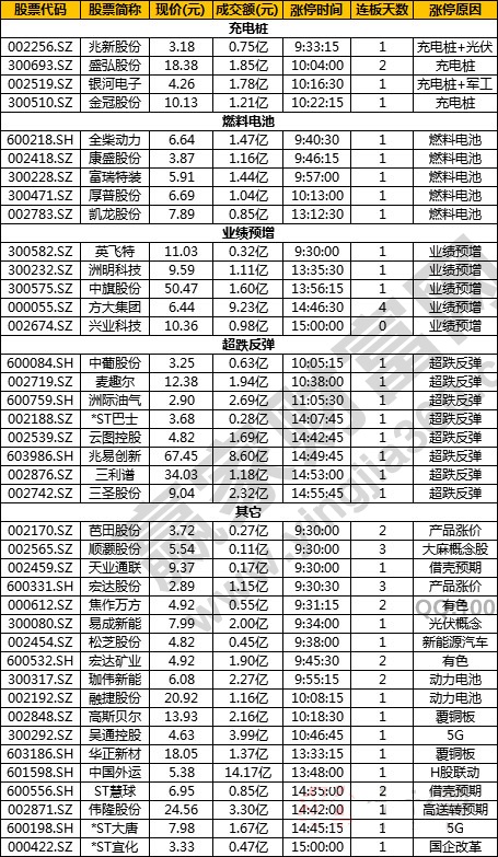 充電樁、燃料電池、業績預增 封板效率:較高