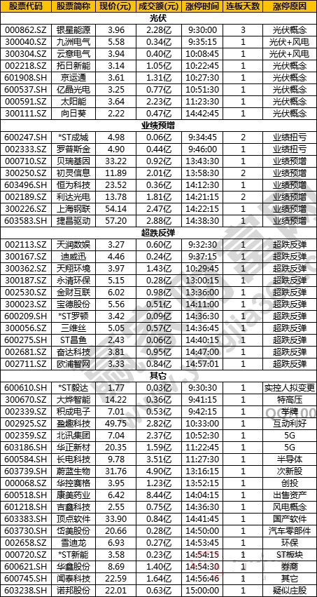 光伏、業績預增、超跌反彈 封板效率:較高
