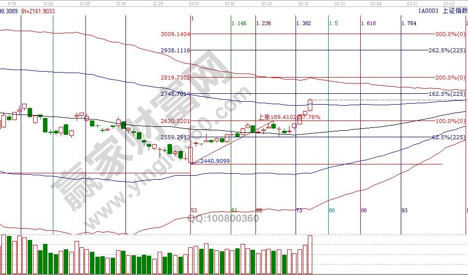 大盤放量上攻突破藍(lán)色上軌線2703點(diǎn)并收在線上進(jìn)入超強(qiáng)通道,藍(lán)線2703回踩不破進(jìn)入新空間,空間點(diǎn)上,轉(zhuǎn)折趨勢(shì)線、江恩輪中輪顯示上方壓力是2740、2765點(diǎn),盤中支撐是2703點(diǎn),黃金時(shí)間周期顯示本月未來時(shí)間窗口18、28號(hào)。操作策略,大盤日線生命線上安全區(qū)域運(yùn)行看多,極反通道生命線附近未表現(xiàn)個(gè)股不易頻繁切換,等待板塊個(gè)股輪動(dòng),整體倉位保持在5成。
