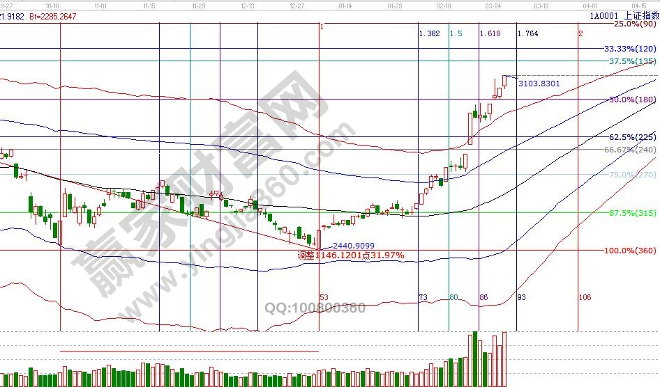 大盤月K線繼日、周K線后今日收盤站在線上,日線延續在紅色外軌線外極強區震蕩上攻,量能決定了強度及持續性,明日市場將進入日線時間周期窗口,空間點位上,江恩輪中輪、四方形提示支撐3074、3055點,3132、3153點壓力,觀察時間窗口期市場人氣股變化,7號及下周12、14號,特別注意12號。操作策略,大盤維持日線震蕩上行,持股上享受瘋狂的同時不斷提高止賺位,即保護了利潤又可將利潤最大化,整體倉位保持在6-8成,時間窗口跟隨盤面做管控。