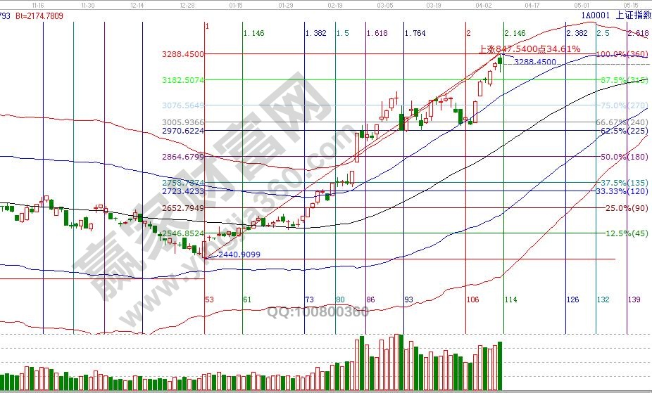 大盤日K線如期按規(guī)則站穩(wěn)一線看高一線,從極反通道藍(lán)色上軌線反攻到紅色外軌線,上周分析中已談到,指數(shù)本周進(jìn)入日線時間窗口周期,同時到達(dá)紅色外軌線走勢將轉(zhuǎn)反復(fù),但整體震蕩上攻趨勢未改變;空間方面,波段百分比延伸線3倍循環(huán)180度3360接近,江恩輪中輪135度是3356點【3350附近是多周期共振位,短線、波段均是風(fēng)險大于機(jī)會】,短期壓力是3261、3283點,短期支撐3228、3196點;時間方面,本周是4月時間窗口密集區(qū)間,8-15號跟蹤與紅色外軌線關(guān)注。操作策略,日線超強(qiáng)通道運行,穩(wěn)健者倉位保持在5成,激進(jìn)者倉位保持在7成,靠近紅色外軌線持倉遵守提高止賺位分批獲利。