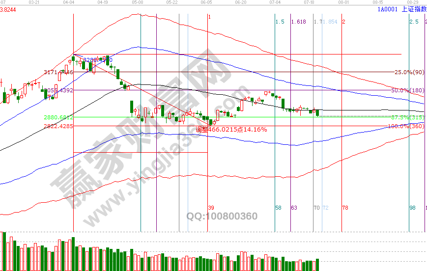 滬指昨天最低點(diǎn)與分析的支撐2878僅一點(diǎn)之差,但日線處于生命線下弱勢(shì),深指與創(chuàng)業(yè)板明日將確認(rèn)日線生命線支撐,幾大指數(shù)如都失守生命線則表示2822點(diǎn)的反彈結(jié)束,同時(shí)也印證了我們近十個(gè)交易日的策略,波段百分比延伸線2878、零度位2966點(diǎn)區(qū)間內(nèi)運(yùn)行持股等待,突破任何一個(gè)點(diǎn)位則將確認(rèn)日線趨勢(shì)。20號(hào)贏家江恩系統(tǒng)培訓(xùn)課中談到,失守2878點(diǎn)向下則看周線生命線(贏家學(xué)員參考極反通道查看具體位置)及缺口位置,突破2966點(diǎn)則再一次確認(rèn)3048高點(diǎn)。預(yù)判目的是做應(yīng)對(duì)計(jì)劃,是敬畏市場(chǎng)的一種體現(xiàn),漲跌市場(chǎng)有自身運(yùn)行規(guī)律,投資者做好持倉(cāng)跟隨,是對(duì)交易、本金的負(fù)責(zé)。23、24號(hào)時(shí)間窗口后,下個(gè)一日線級(jí)別時(shí)間是8月1號(hào)。7月23號(hào)盤(pán)中壓力是135度2911點(diǎn)、180度2928點(diǎn),盤(pán)中支撐是0度2860點(diǎn)、315度2844點(diǎn)【參考性強(qiáng)】。操作策略,指數(shù)極反通道生命線下弱勢(shì)震蕩,整體持倉(cāng)保持3成以內(nèi),降低操作頻次。