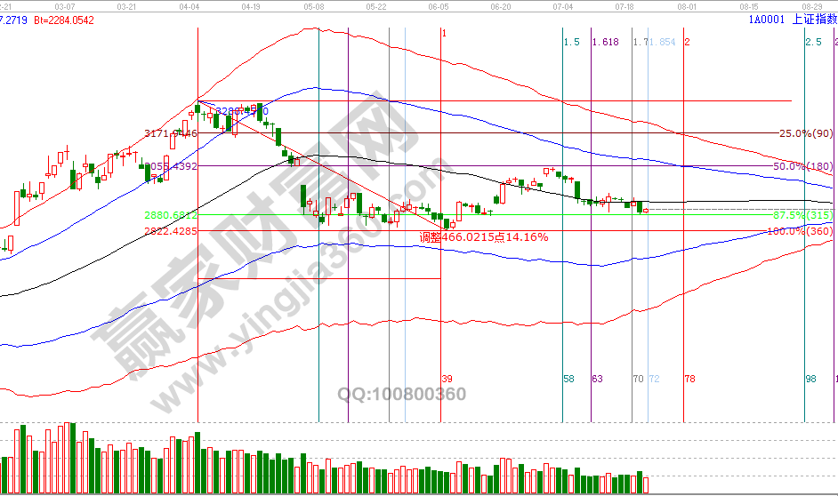 23(24)號是贏家江恩時間工具測算本月最后一個時間時間窗口,8號中陰后橫肋第12天,按費氏時間線做圖25號是第13天,這是短線時間極限窗,進入方向博弈決戰期。趨勢方向,三大指數深指、創業板在日線極反通道生命線上運行,滬指線下弱勢區運行,深市保持強勢運行還有機會帶動滬指轉好,深市失守則確認日線趨勢轉弱。價格關鍵位上,滬指擊破波段百分比延伸線240度2878點,或收復日線生命線2926點會有操作,這兩天要多盯盤做好應對。7月24號盤中壓力是135度2911點、180度2928點,盤中支撐是0度2860點、315度2844點。操作策略,指數極反通道生命線下弱勢震蕩,整體持倉保持3成以內,用規則紀律應對盤面方向選擇。