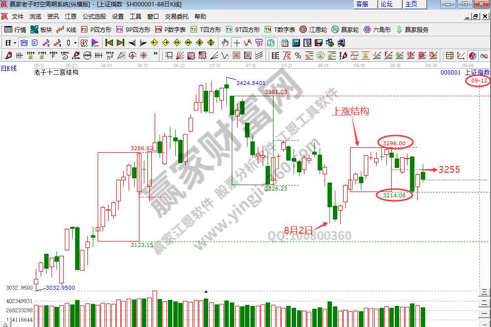 滬指8月29日低開高走以陽(yáng)線收盤,贏家時(shí)空工具顯示指數(shù)當(dāng)前有再度轉(zhuǎn)弱的趨勢(shì),等待工具信號(hào)的進(jìn)一步確認(rèn)。指數(shù)上攻周線老子十二宮前期上漲結(jié)構(gòu)頂部3305點(diǎn)受阻后展開回調(diào),下方重要支撐關(guān)注周線下跌結(jié)構(gòu)警戒線3149點(diǎn),當(dāng)前在極反通道生命線下弱勢(shì)區(qū)域內(nèi)短期呈現(xiàn)震蕩走勢(shì),上方重要壓力為生命線3287點(diǎn)和3305點(diǎn)區(qū)間,未突破生命線轉(zhuǎn)強(qiáng)前降低操作頻次,等待突破生命線進(jìn)入強(qiáng)勢(shì)區(qū)域后再積極操作。時(shí)間方面,老子十二宮顯示下一個(gè)時(shí)間窗口為9月12日。操作上,近期繼續(xù)密切關(guān)注證券、銀行、保險(xiǎn)這些大金融板塊,等待新的板塊機(jī)會(huì)出現(xiàn),屆時(shí)會(huì)在贏家聊吧“大盤直播”帖中解讀。