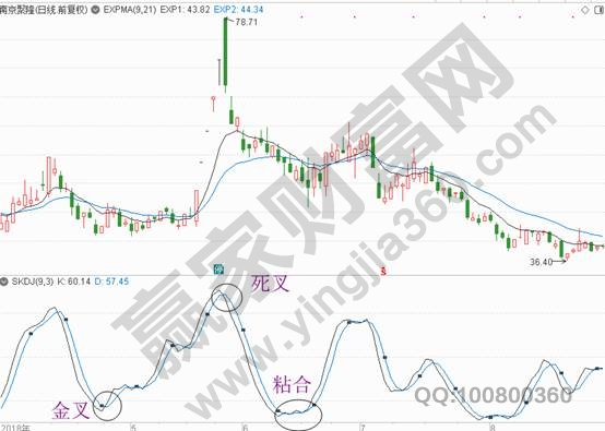 SKDJ指標(biāo)是什么?它其實(shí)指的就是慢速隨機(jī)指標(biāo)。這個(gè)指標(biāo)主要是通過(guò)當(dāng)日或最近幾日的最高價(jià)、最低價(jià)以及收盤(pán)價(jià)等價(jià)格的波動(dòng)幅度來(lái)反映價(jià)格趨勢(shì)的強(qiáng)弱,一般來(lái)講的話,這個(gè)指標(biāo)中有價(jià)值的形態(tài),與其它指標(biāo)是一樣的,即粘合、金叉、死叉。如下面的南京聚隆走勢(shì)圖。