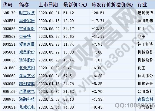 這也是一個關鍵的原因,市場在相對成熟之后也會出現破發的情況,如果市場將來更加成熟了之后,甚至可能會出現新股發不出去的情況,現在還只是在上市交易之后慢慢被市場不認可,一段時間后跌破發行價。以下是去年破發次新股: