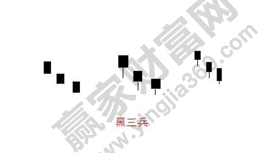 三根中陰線組成黑三兵,陰線的開盤價切入前一天的陰線,上影線以及下影線,短點(diǎn)比較好,如果是高位出現(xiàn)黑三兵,就要小心股價下跌的趨勢。