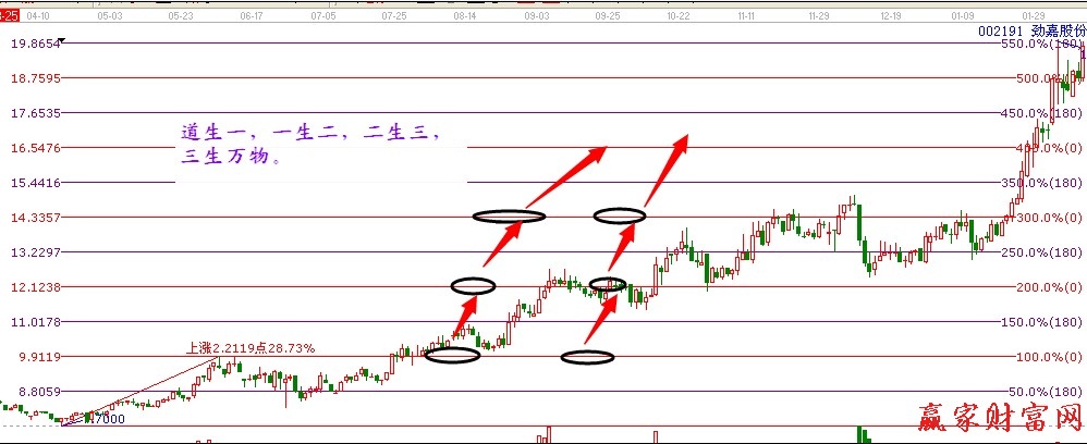 使用這一方法需要會(huì)看大盤,兩外就是需要注意的方面:一是不是適用所有的股票,較常見運(yùn)用在強(qiáng)勢(shì)股票上;二是關(guān)于量度升幅的起始位置要選擇好。一般來說就是需找這波行情的開始的位置,看之后的漲幅多少。這就像贏家江恩軟件中有使用波段百分比延伸線這個(gè)工具。原理就是道家思想:道生一,一生二,二生三,三生萬物。