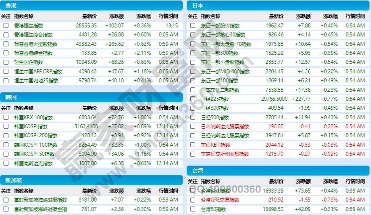以下是部分亞洲股市的介紹: