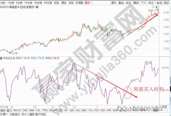 2、這個戰(zhàn)法如果是運用在上海黃金TD市場上也是非常廱的,如果是該指標(biāo)突破20值做多單,跌破80值做空單。對于20和80的界限,在前面也介紹過,這里就再簡單的說一下,即RSI指標(biāo)在20以下就是屬于超跌的,如果跌破之后我們就要注意行情的反彈機(jī)會,一旦突破20值行情開始拉升就可以果斷進(jìn)入賺錢,一旦RSI突破80值就要注意風(fēng)險,一旦跌破80值就要進(jìn)行逢高減倉或者賣出股票。