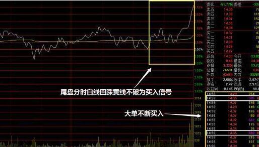 2)看分時圖,回踩黃線以及分時白線處于上漲狀態,有大單進入,重點關注。