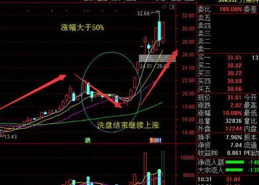 尾盤買入的時候,最好是洗盤結束,這就考驗投資者的看K線以及看盤能力;
